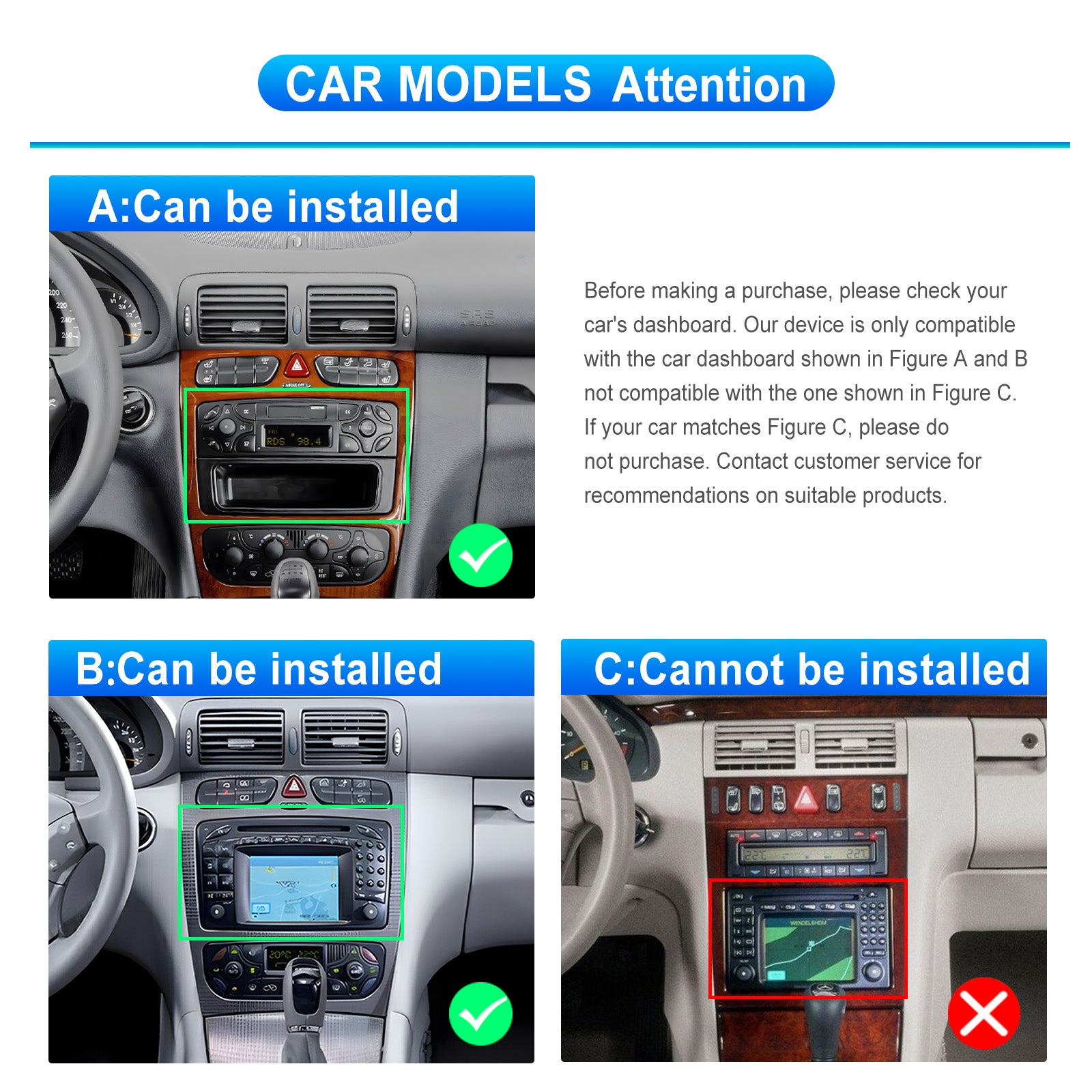 Mercedes C Class 2000-2005 | 9" Android Touch Screen Radio | Wireless CarPlay & Android Auto | GPS | Bluetooth | Wi-Fi