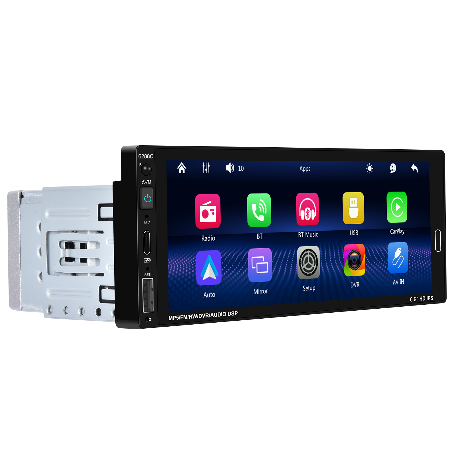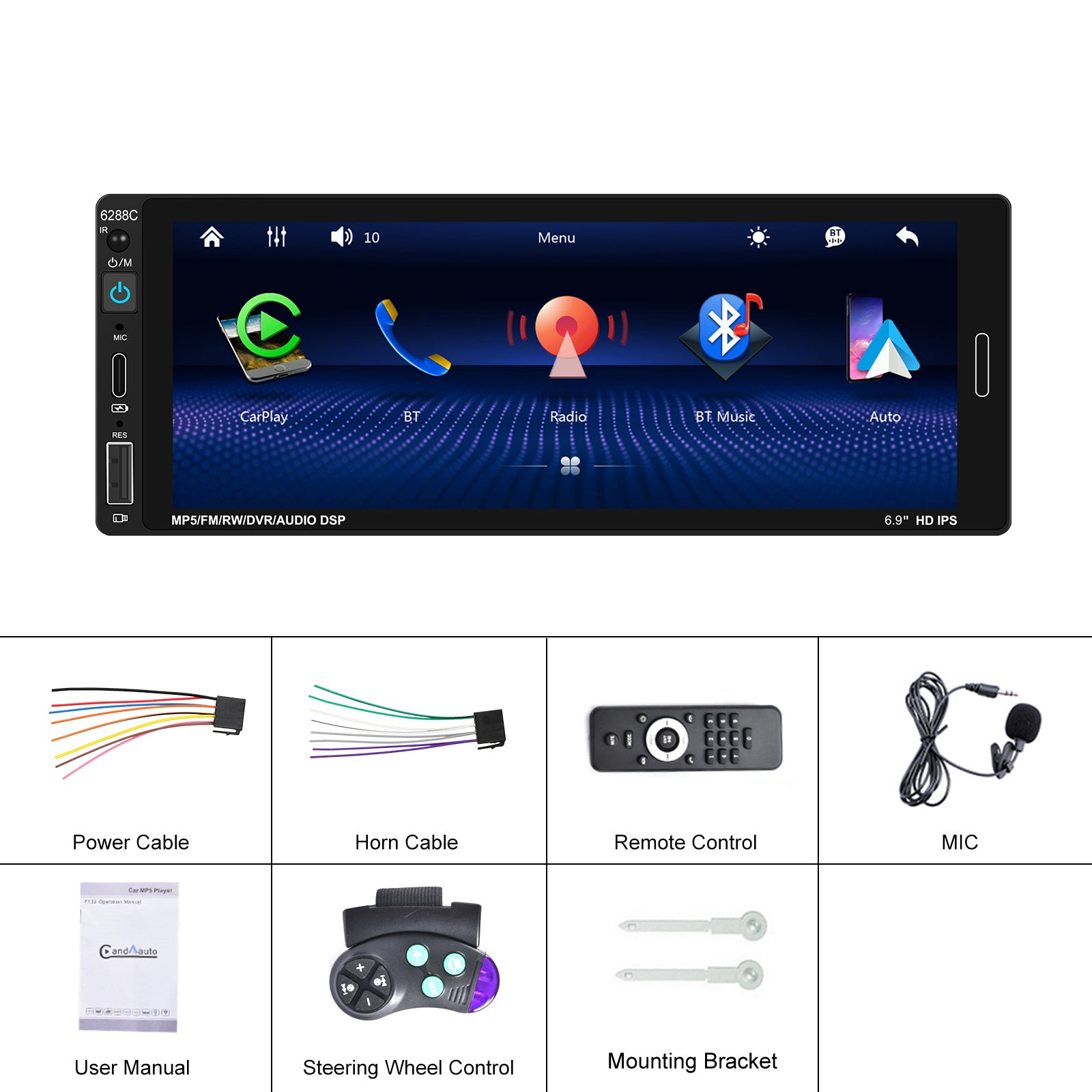 Upgrade your vehicle’s infotainment with this universal 6.86″ multimedia system — designed to bring modern connectivity, premium sound customization, and hands-free convenience to any car. Featuring wired Apple CarPlay, Android Auto, Bluetooth, USB/Type-C media, FM Radio, and steering wheel control compatibility, this system enhances both functionality and driving experience.